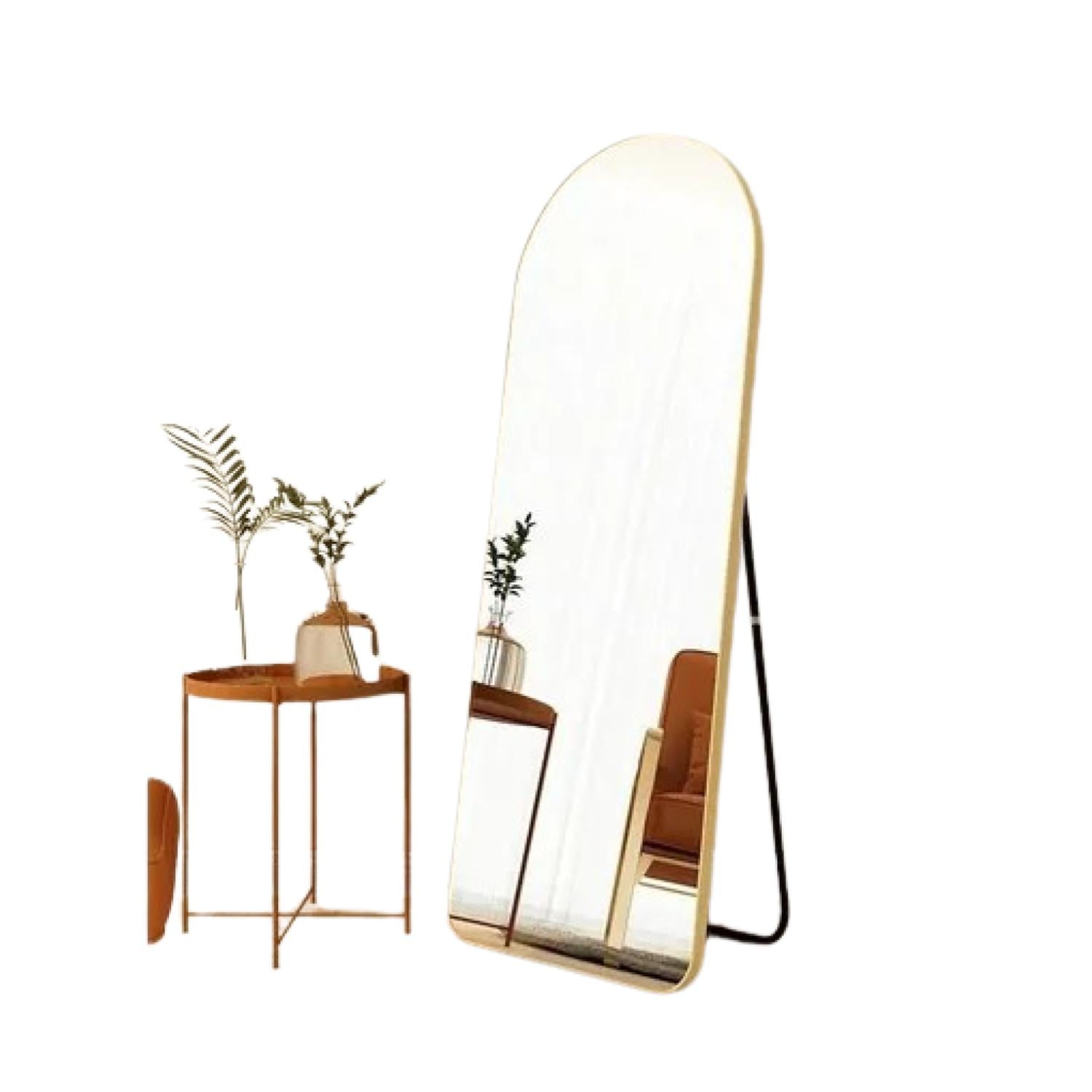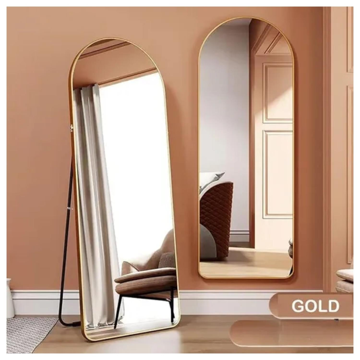 Diseño único El diseño arqueado es único y la parte superior del espejo está diseñada con un marco superior arqueado sin costuras. Este espejo corporal parece ser tu puerta a un mundo hermoso. Puede mostrar completamente tu belleza y también se puede utilizar como decoración en tu habitación.
