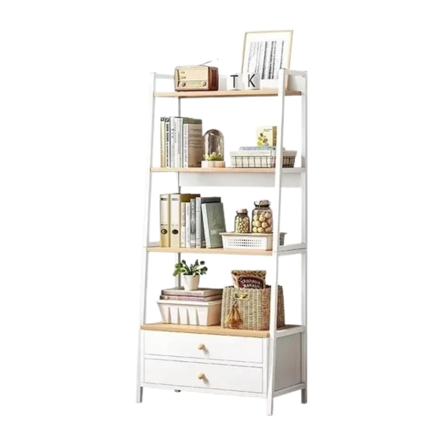 Agrega funcionalidad y estilo a tu hogar con este estante organizador de diseño moderno. Con 4 niveles abiertos y 2 cajones inferiores, es perfecto para exhibir libros, plantas, adornos o almacenar objetos de uso diario. Su estructura combina melamina en tonos blanco y madera con detalles metálicos, aportando un toque decorativo a cualquier espacio.