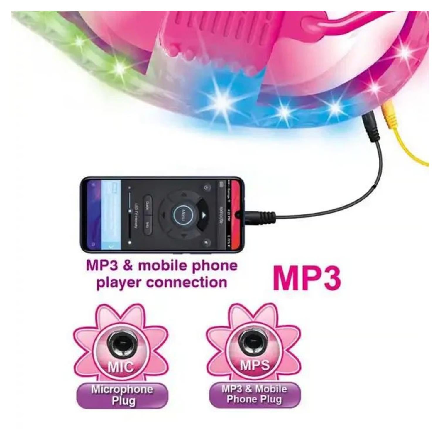 ¡Haz que la música cobre vida con esta increíble guitarra infantil con luces, micrófono y pedestal! Diseñada para pequeños artistas desde los 3 años, esta guitarra no solo brilla al tocarla, sino que también permite conectar un MP3 para acompañar cada show con sus canciones favoritas.